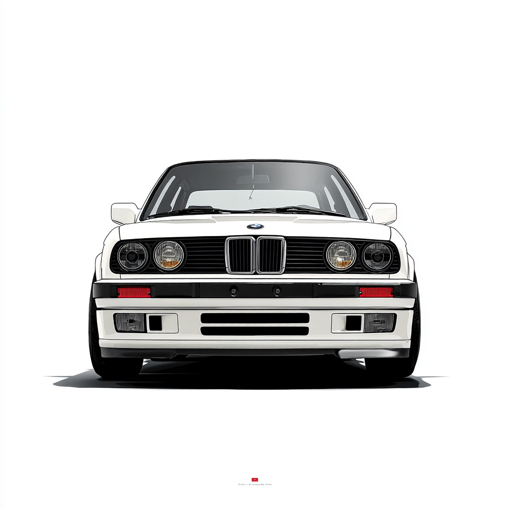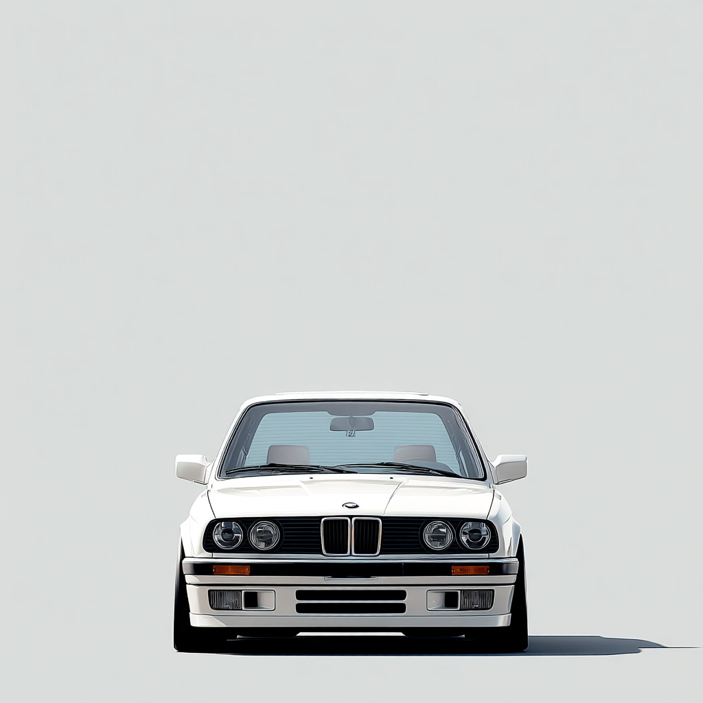 白色背景,极简风格,宝马E30。