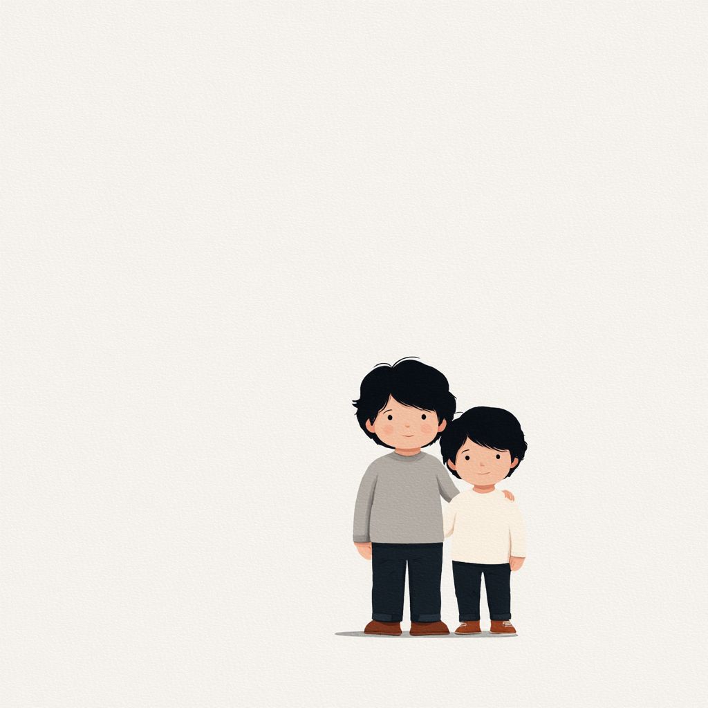 白色背景,极简风格,可爱的兄弟。