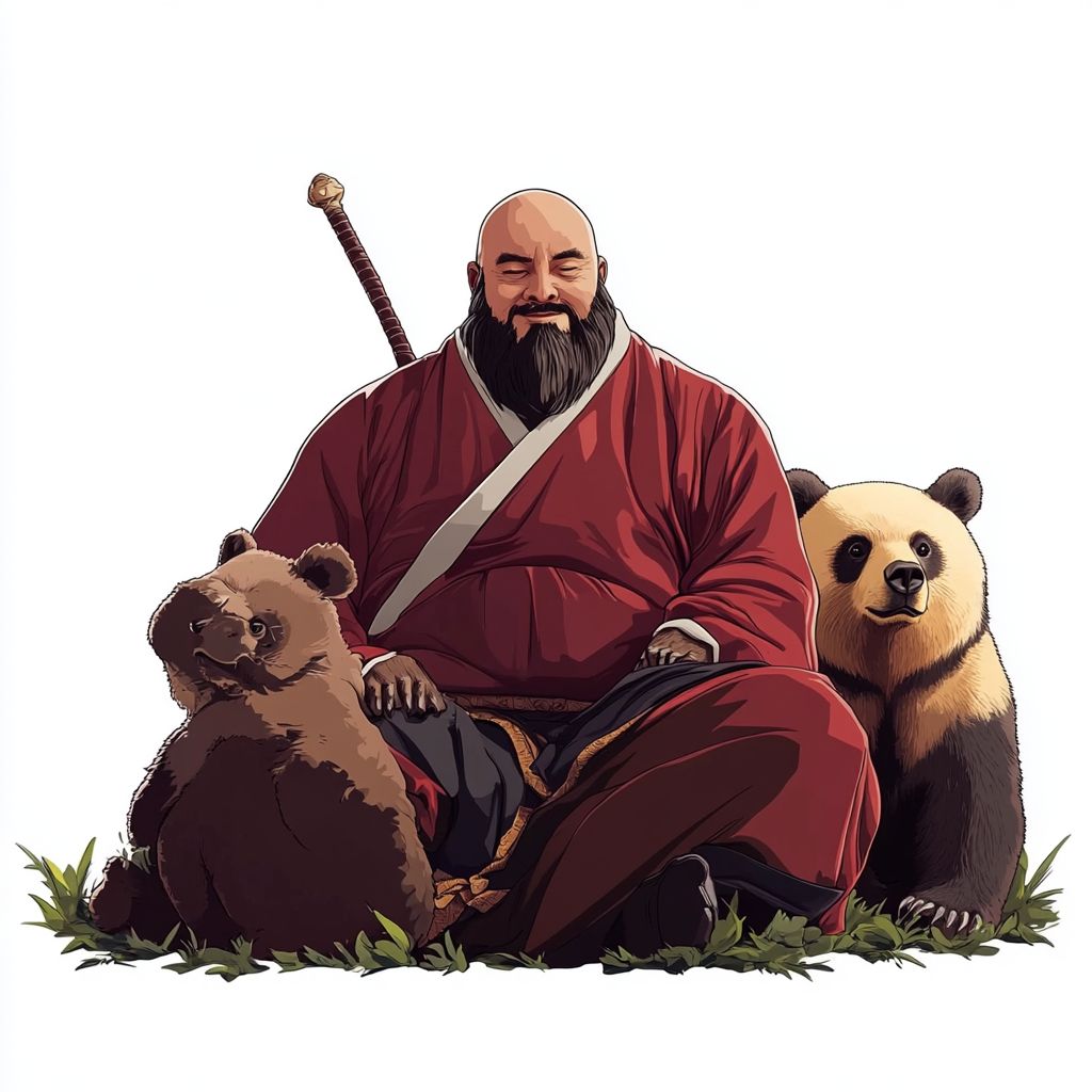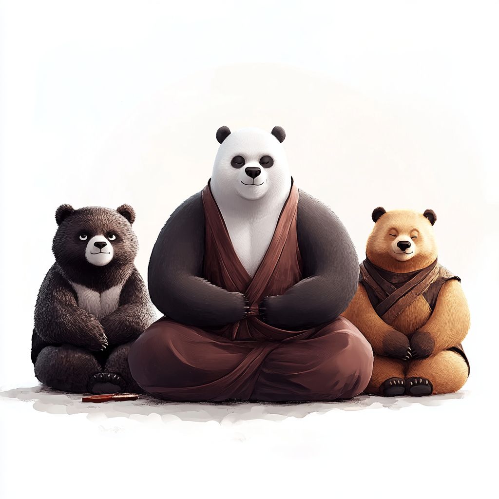 白色背景,极简风格,秃头强和两只熊的动画。