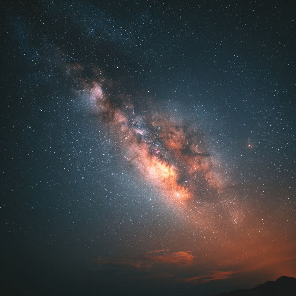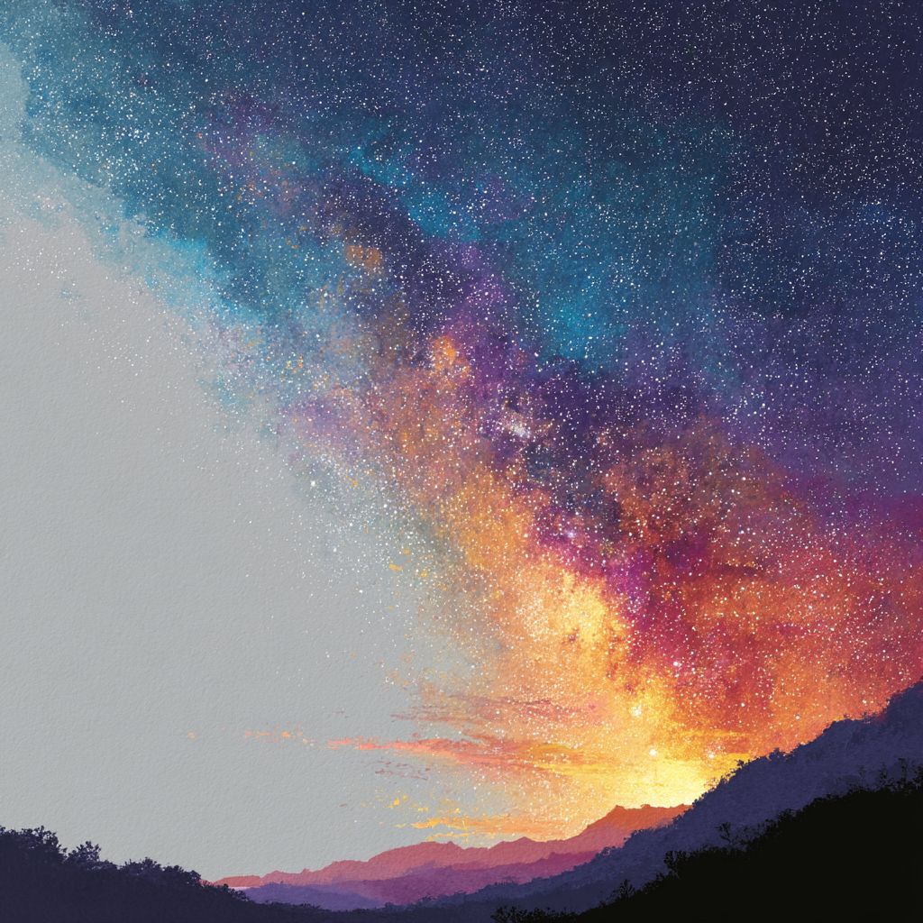 白色背景,极简风格,夜空中闪耀着五彩斑斓的银河。