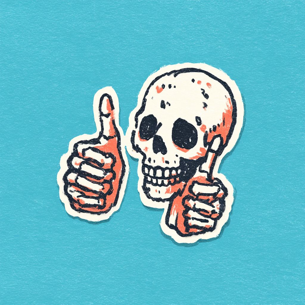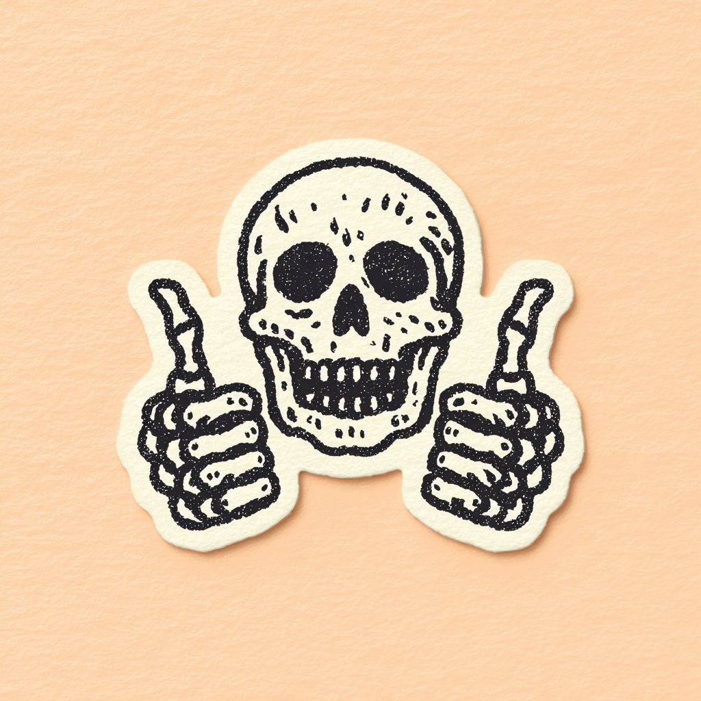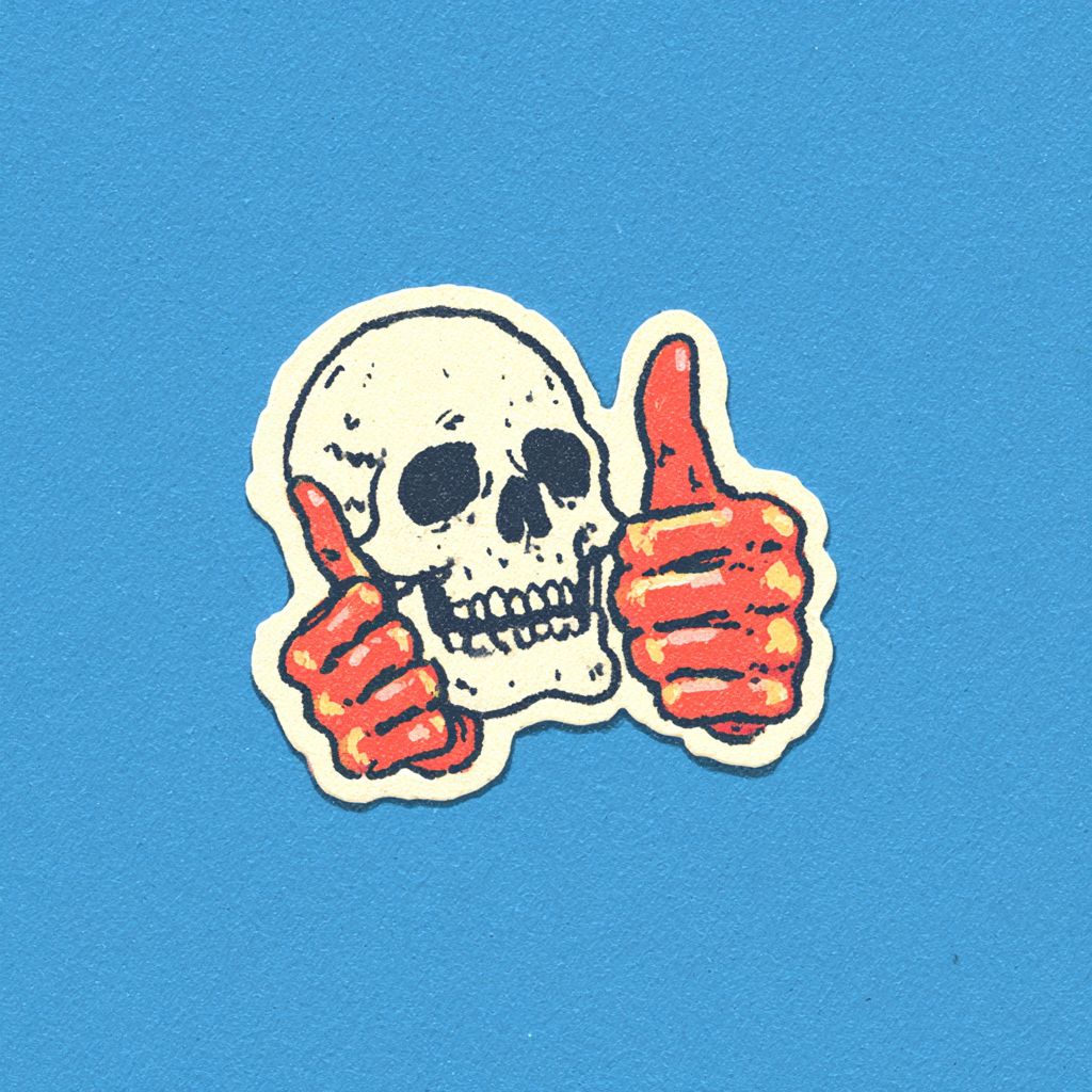 简单的标志,卡通骷髅手竖起大拇指,吻切贴纸
