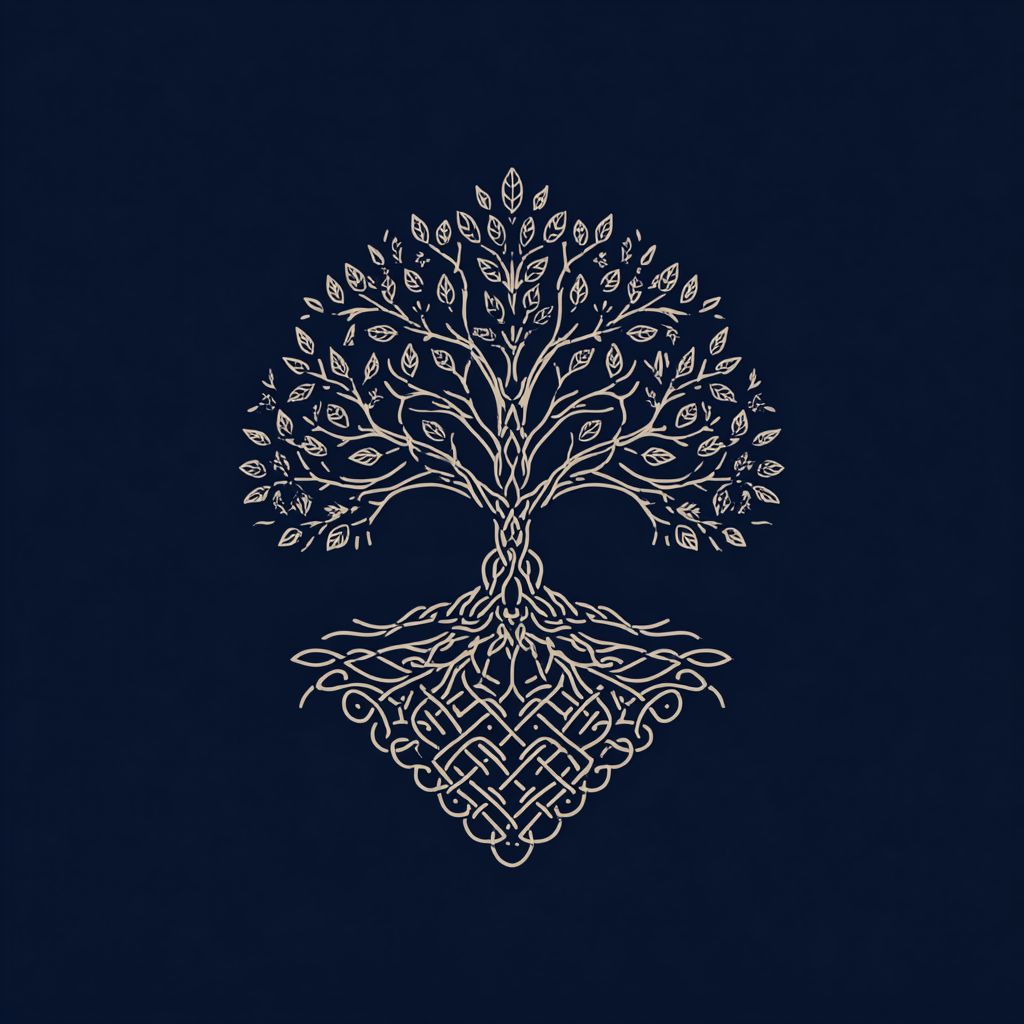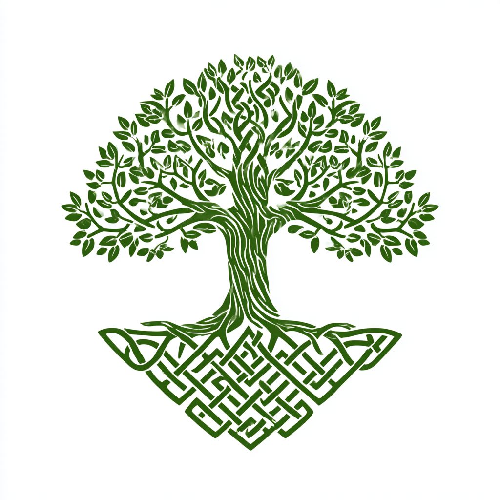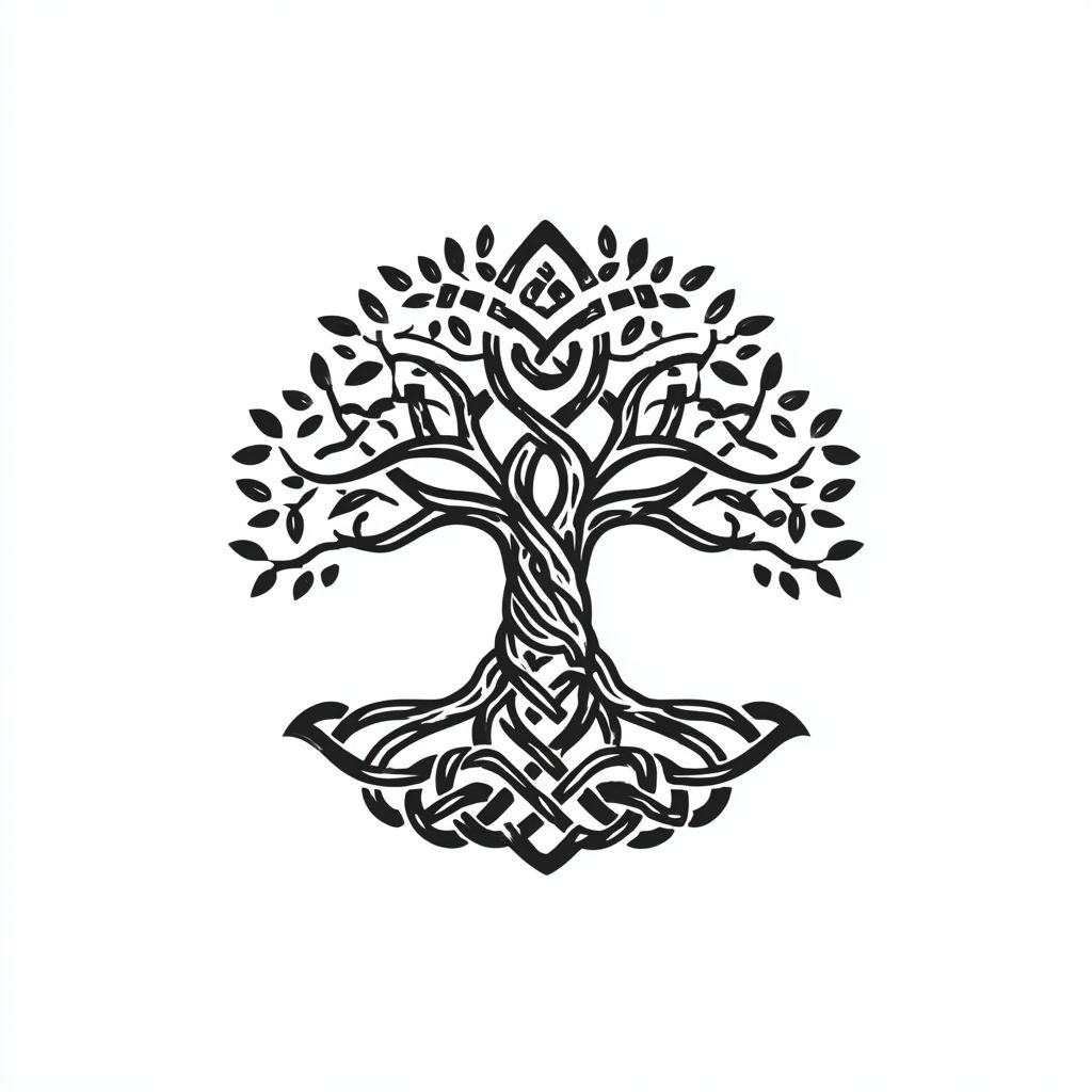 标志,简单的线条艺术树,根部呈凯尔特结的模式