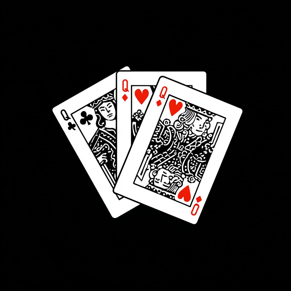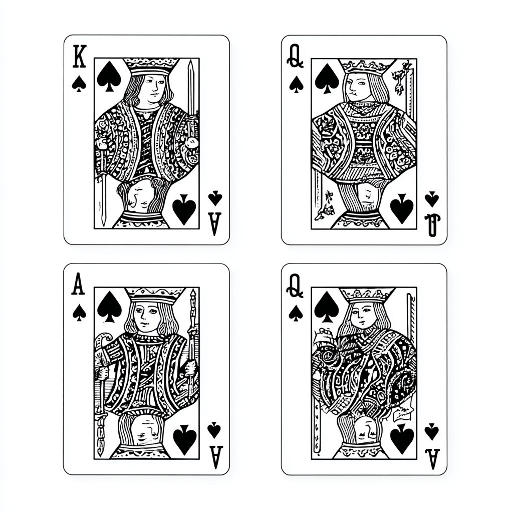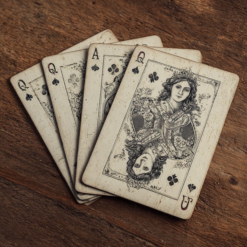 旧扑克牌,简单线条,人物牌,梅花,女王